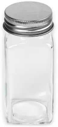 - Clear 100ml square glass jar with a spice jar cap