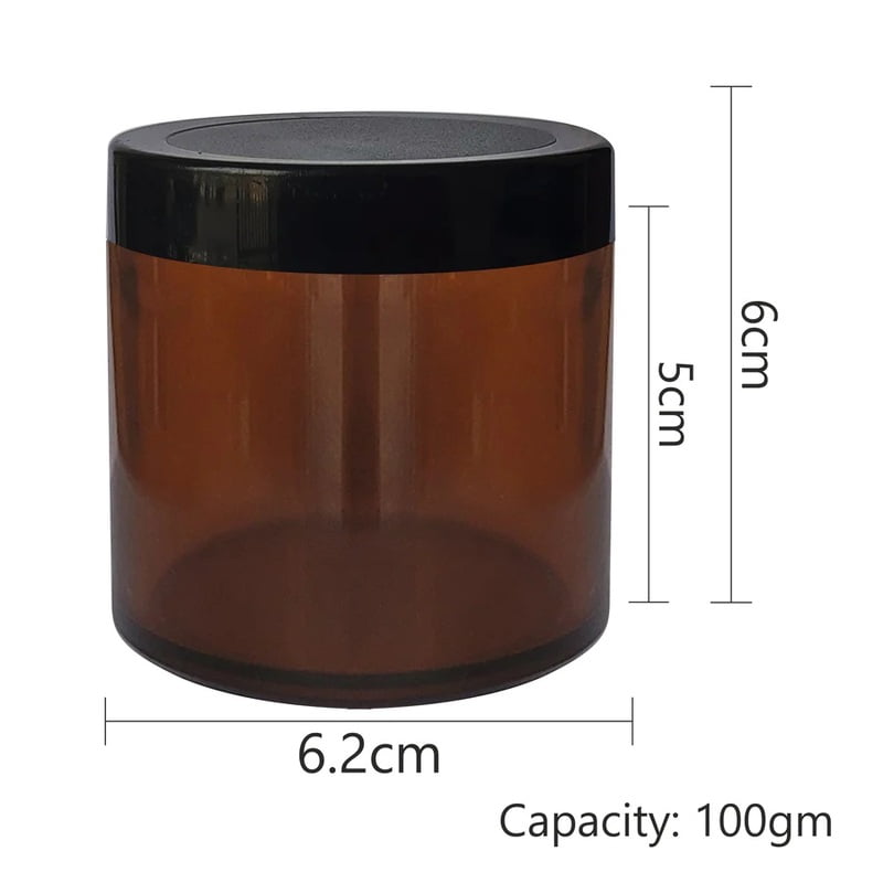 - Elegant organization: Our 100ml amber acrylic san jar is designed to bring style and functionality to your space. The amber color adds a warm and inviting touch, while the black cap and inner white lid ensure your items are securely stored and protected.