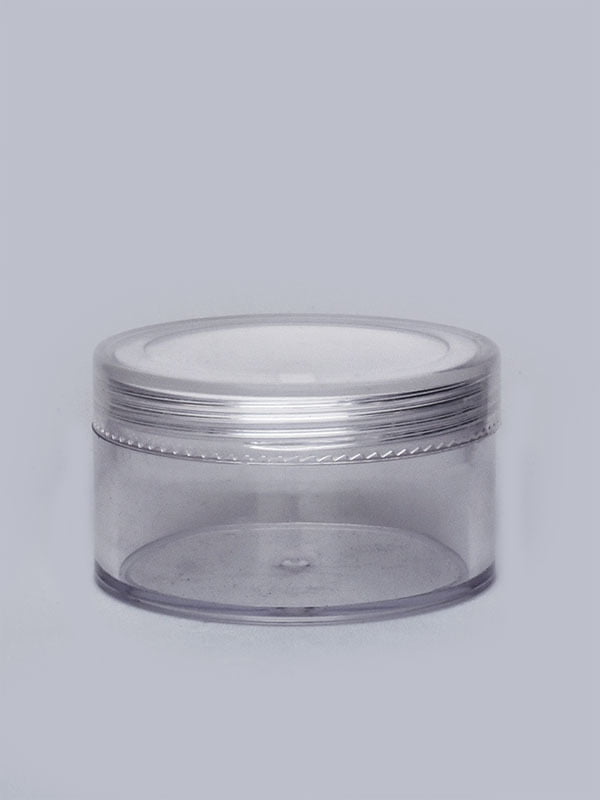 - Our transparent acrylic san jar is a versatile storage solution that combines functionality with style. Its transparent color allows you to easily identify the contents, while the white inner lid provides a clean and hygienic seal. Whether you're organizing skincare products, cosmetics, or small accessories, this 50ml jar offers the perfect size for your needs.
